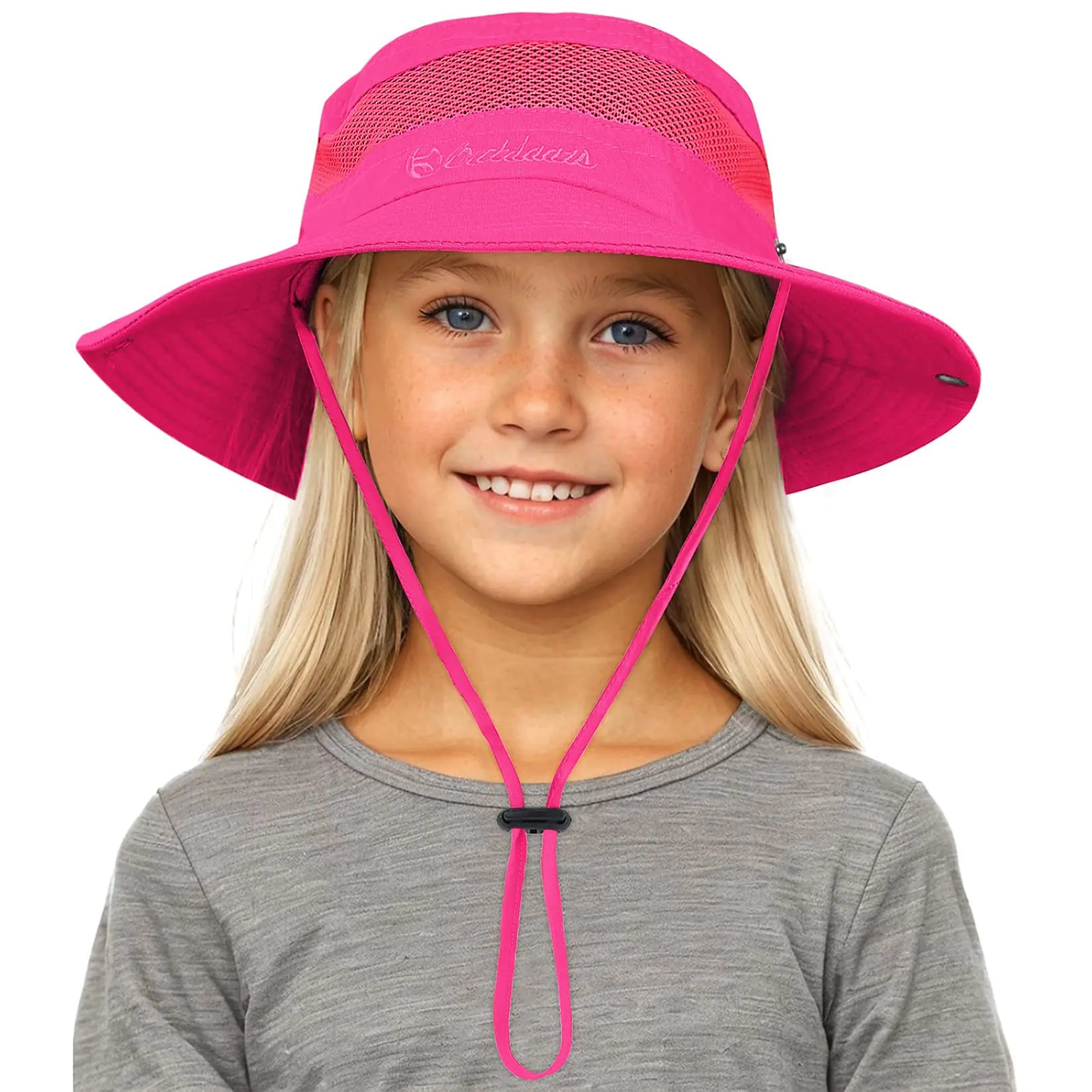 Century Star Outdoor Kids Sun Hat Boys Sun Hat Girls Beach Hat UPF 50+ Kids Bucket Hat Wide Brim Kids Fishing Safari Hat Rose Red 5-13T