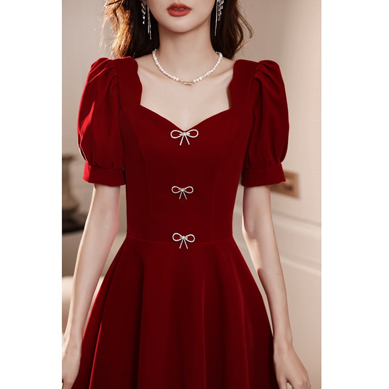Step into elegance with our beautiful summer engagement dress, perfect for little girls who want to shine like a bride! This Toast Dress features charming short sleeves and a delightful wine red color that is sure to capture attention. Crafted from a carefully selected blend of fabrics, including polyvinyl alcohol fiber, this dress offers both comfort and style.